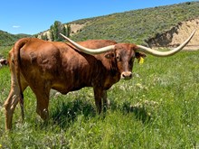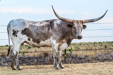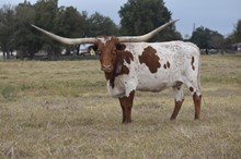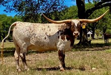 This is a very correct young bull that has sired some very attractive calves. His sire JP Rio Grande and Shadow Jubilee (third longest horned cow in the breed) have mated up and produced a great young herd sire that will improve any program.